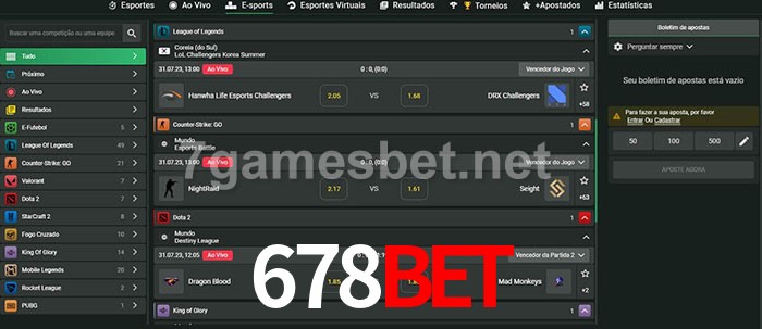 O 678bet oferece uma grande seleção de opções de apostas em e-sports com probabilidades competitivas